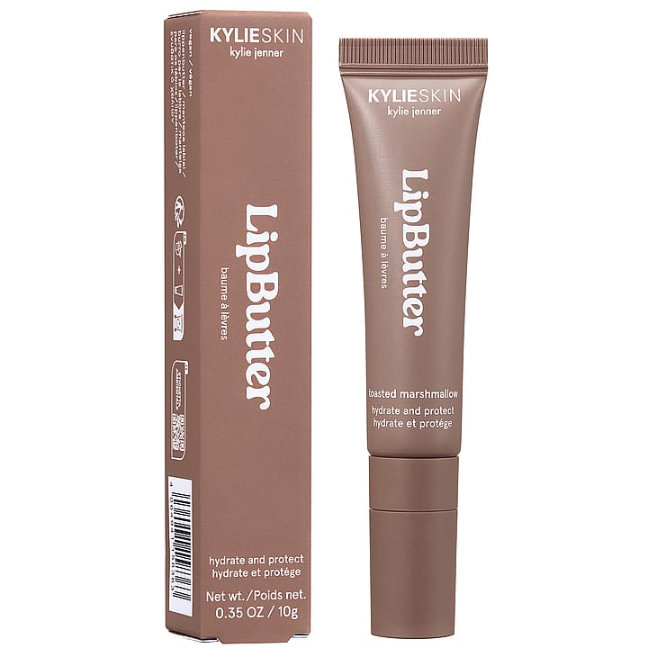 Kylie Skin Lip Butter on ultra-hydratoiva ja esteitä suojaava huulirasvakaava, joka tuo terveeltä näyttävät ja pulleat huulet. Tämä sileä ja silkkinen, ihonhoitoaineita täynnä oleva voide kosteuttaa kuivia ja halkeilevia huulia välittömästi jopa 24 tunniksi, ylläpitää ihon esteen ja parantaa näkyvästi huulien juonteiden ulkonäköä. Toasted Marshmallow jättää huulille kiiltävän, puoliksi läpikuultavan ruskean sävyn.