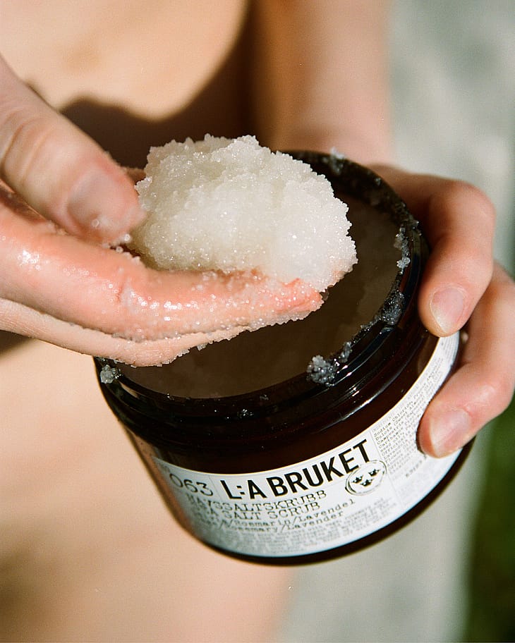 L:a Bruket 296 Sea Salt Scrub Bergamot/Patchouli on luonnollinen vartalokuorinta, joka sisältää runsaasti magnesiumia sisältävää suolaa ja manteliöljyä, joka kuorii ja kosteuttaa ihoa hellävaraisesti. Kuorinta vapauttaa ihon myrkkyistä, elvyttää kehoa ja sielua sekä auttaa stimuloimaan verenkiertoa, mikä edistää tervettä ihoa ja sileämmän koostumuksen. Sisältää runsaasti D-, E-vitamiinia, kivennäisaineita ja tärkeitä rasvahappoja, jotka vahvistavat ihoa, ehkäisevät tulehduksia, korjaavat vaurioita ja ehkäisevät tehokkaasti kuivumista.