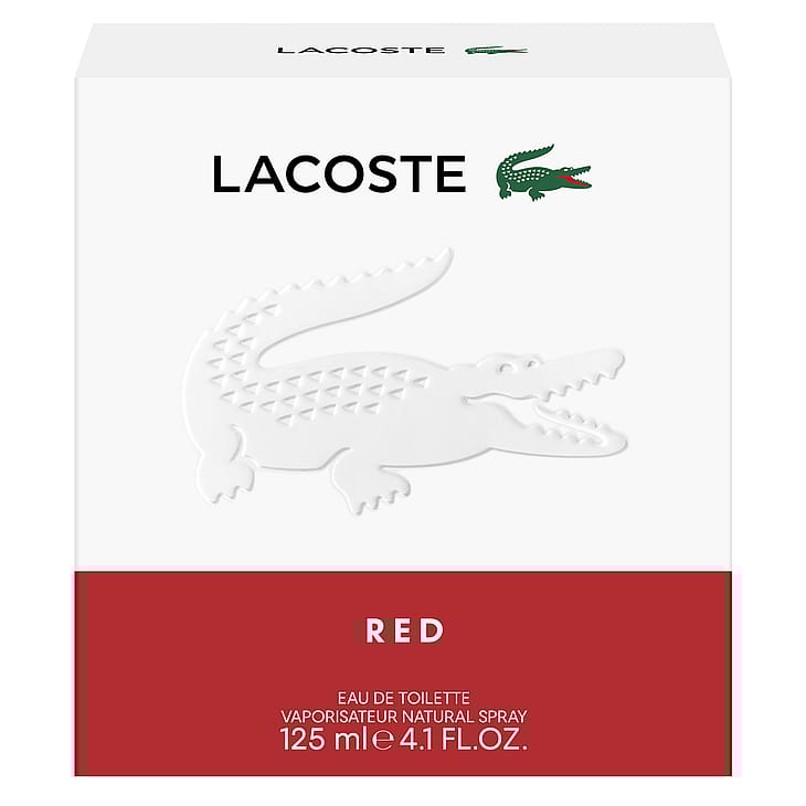 TUOKSU Lacoste Red, tuoksu täynnä energiaa ja sitkeyttä. Tunne vihreän omenan kirpeä raikkaus kontrastina männyn ja patsulin mukavuuden kanssa ennen kuin paljastat tämän dynaamisille miehille tarkoitetun fougre-hedelmäisen tuoksun tyylikkään maskuliinisen puumaisen pohjan. PAKKAUS Sen moderni ja tyylikäs pullo korostaa merkin ikonisia koodeja lasiin kaiverretulla krokotiilitunnuksella. Tuoksun ulkopakkauksessa ja korkissa on silmiinpistävä punainen sävy edustamaan tuoksun ja sen käyttäjien energiaa.
