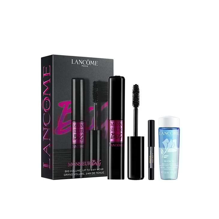Lancômen Monsieur Big maskara-lahjapakkaus on täydellinen lahja naiselle, joka haluaa ripsiin maksimaalista tuuheutta. Levittämällä ripsiväriä kerroksittain saat entistä tuuheammat ripset. Monsieur Big -ripsivärissä on isokokoinen, pehmeä harja, joka antaa jokaiselle ripselle upeaa tuuheutta tyvestä kärkeen. Lahjapakkauksen sisältö: Monsieur Big maskara, minikokoinen Drama Liquid silmienrajauskynä ja Bi-Facil -silmämeikinpoistoaine 30ml.