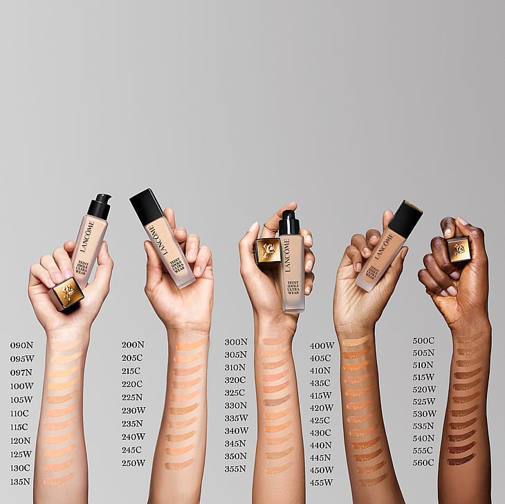 Meikkivoiteesta on saatavilla 50 sävyä. Innovatiivinen sävyvalikoima sisältää oksidinvihreitä ja ultramariininsinisiä pigmenttejä, jotta keskitummat ja tummat sävyt saadaan tarkasti oikeiksi. Se takaa ihollesi täydellisesti sopivan Teint Idôle -sävyn.