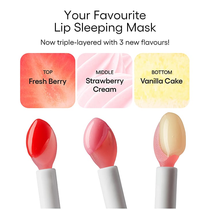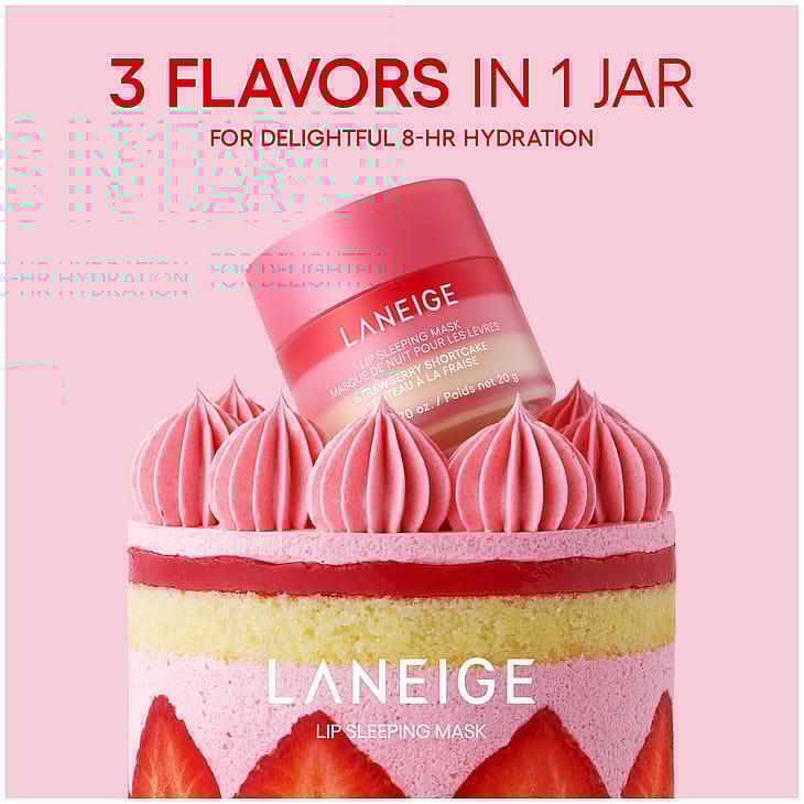 Nauti jälkiruokainspiroituneesta huulihoidosta LANEIGE Lip Sleeping Mask Strawberry Shortcake -yönaamion avulla. Täyteläinen koostumus sisältää Berry Fruit Complex™ -yhdisteen, C-vitamiinia ja kookosöljyä, jotka kosteuttavat ja pehmentävät kuivia huulia intensiivisesti. Tuoksussa yhdistyvät raikkaat marjat, kermaiset mansikat ja pehmeä vaniljakakku. Lopputuloksena huulet tuntuvat sileiltä, ravituilta ja kevyen makealta tuoksuvilta.