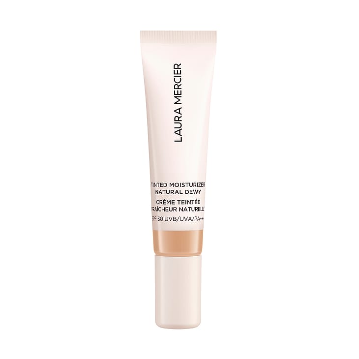 Tinted Moisturizer Natural Dewy SPF 30 on Laura Mercierin ihonhoidon salaisuus luonnollisesti hehkuvaan ja kuultavaan "ei meikkiä -meikkilookiin." Tämä 88-prosenttisesti ihonhoidollisista ainesosista koostuva sävytetty kosteusvoide antaa 16 tunnin kevyen peittävyyden ja häivyttää välittömästi epätasaisuuksia. Lopputuloksena on tasaiselta, kosteutetulta ja täyteläiseltä näyttävä iho.