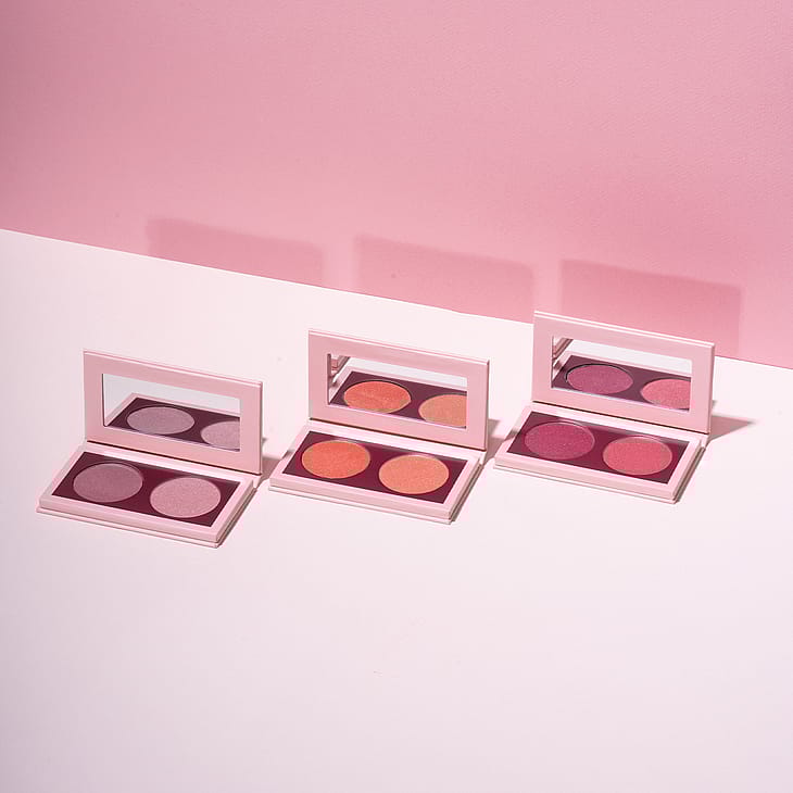Tämä monikäyttöinen duo-paletti, jossa on kaksi runsaspigmenttistä metallinhohtoista väriä poskille ja silmille, antaa kasvoillesi hienostuneen, hohtavan lookin. Kevyt ja voidemainen koostumus tarttuu hyvin ihoon ja luo tasoittavan vaikutuksen ja loistavan lopputuloksen. Väriä voi kerrostaa ja se pysyy iholla hyvin, joten se sopii yhtä hyvin sekä arkeen että juhlaan. Duo-pakkauksista on saatavana kolme eri väriyhdistelmää, joissa on kaikissa kaksi väriä – täydellinen yhdistelmä loputtomien variaatioiden luomiseen. Tuote on tietysti täysin vegaaninen.