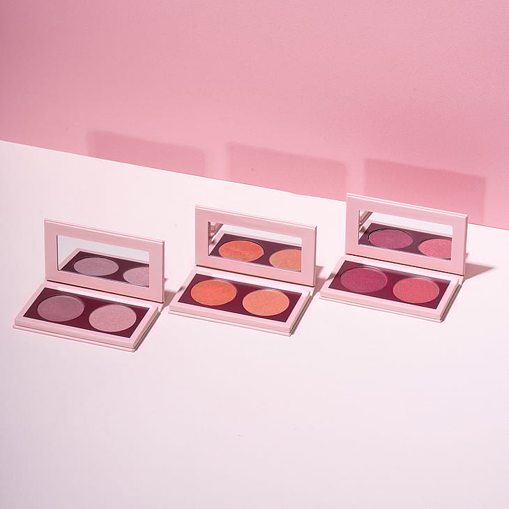Tämä monikäyttöinen duo-paletti, jossa on kaksi runsaspigmenttistä metallinhohtoista väriä poskille ja silmille, antaa kasvoillesi hienostuneen, hohtavan lookin. Kevyt ja voidemainen koostumus tarttuu hyvin ihoon ja luo tasoittavan vaikutuksen ja loistavan lopputuloksen. Väriä voi kerrostaa ja se pysyy iholla hyvin, joten se sopii yhtä hyvin sekä arkeen että juhlaan. Duo-pakkauksista on saatavana kolme eri väriyhdistelmää, joissa on kaikissa kaksi väriä – täydellinen yhdistelmä loputtomien variaatioiden luomiseen. Tuote on tietysti täysin vegaaninen.