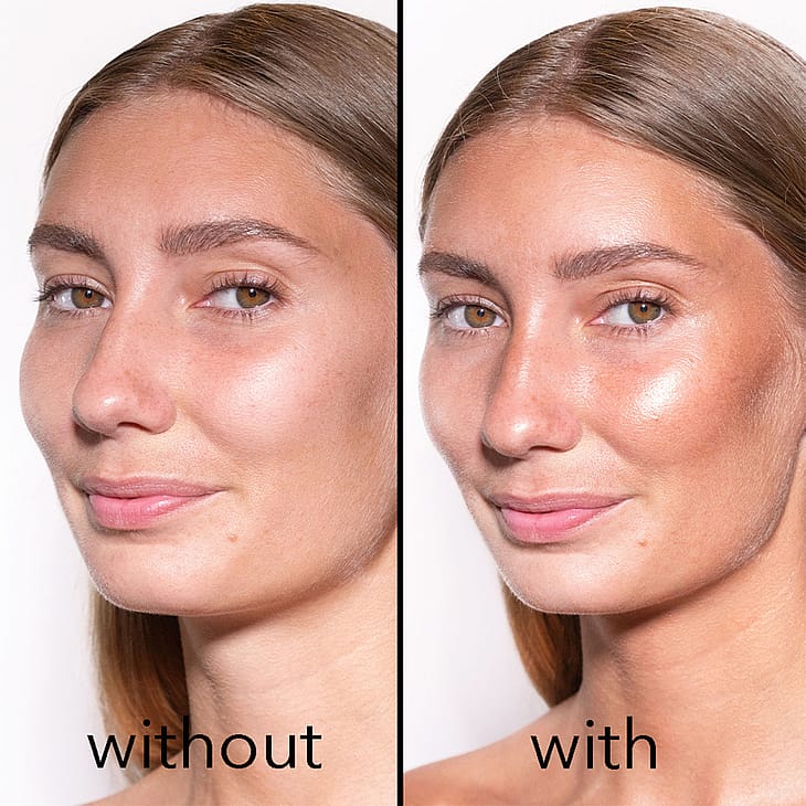 ”Pikaratkaisu” ihon heleyttämiseksi. Shaping light vahvistaa valon heijastumista ja sisältää ihoa hoitavia ja kosteuttavia ainesosia, antioksidantteja ja vitamiineja. Käytä highlighterina korostamaan kasvonpiirteitä, pohjustustuotteena tai päivävoiteeseen tai meikkivoiteeseen sekoitettuna. Tuote on tietenkin täysin vegaaninen.