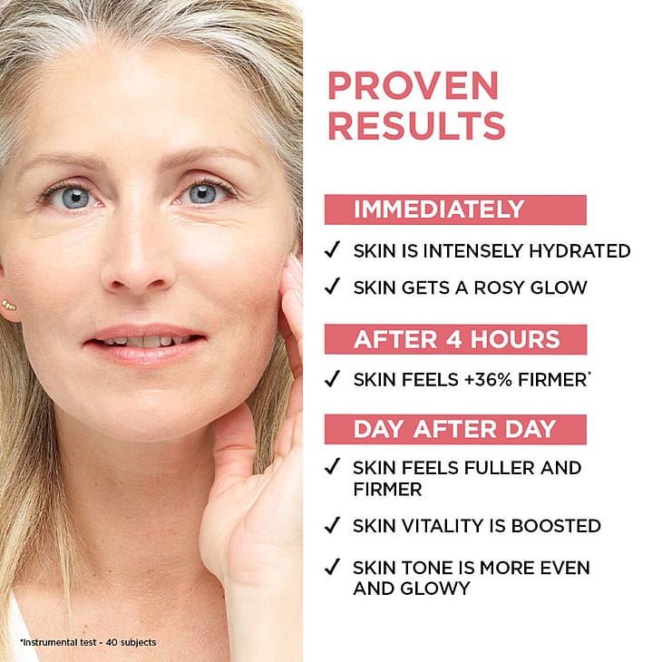 Varttuneelle iholle tarkoitettu intensiivisesti kosteuttava kasvovoide, joka on rikastettu kalsium B5:llä, tekee ihosta täyteläisemmän ja kiinteämmän tuntuisen. Koostumus sisältää myös pioniuutetta, joka auttaa ihoa saamaan vähitellen takaisin luonnollisen värinsä, sekä vaaleanpunaisia pigmenttejä, jotka tuovat iholle hehkua. Nauti ihosi koko potentiaalista L'Oréal Paris Age Perfect -kasvovoiteen avulla!