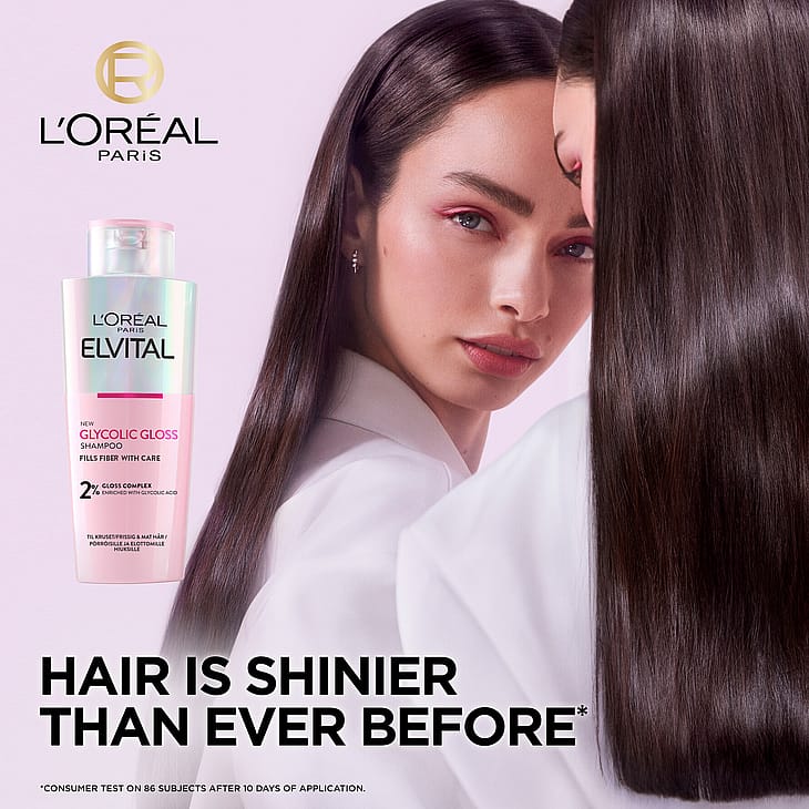 L'Oreal Paris Elvital Glycolic Gloss -shampoo elottomille, kiiltoa kaipaaville hiuksille. Glycolic Gloss- sarja on kiiltoa antava kotona käytettävä hiustenhoitorutiini, jonka tuotteet korjaavat hiuksia, tekevät hiusten kunnosta paremman ja antavat pitkäkestoista kiiltoa. Lopputuloksena 77% kiiltävämmät** ja 88% sileämmät** hiukset.