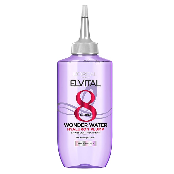 Elvital Hyaluronic Plump Wonder Water Lamellar -käsittely. Elinvoimaisemmat ja intensiivisesti kosteutetut hiukset. Antaa hiuksillesi 18X enemmän kosteutta*. Kiiltävämmät hiukset* koostumuksessa joka ei sisällä silikonia luonnollisen tunteen aikaansaamiseksi.*Mittaustulokset.