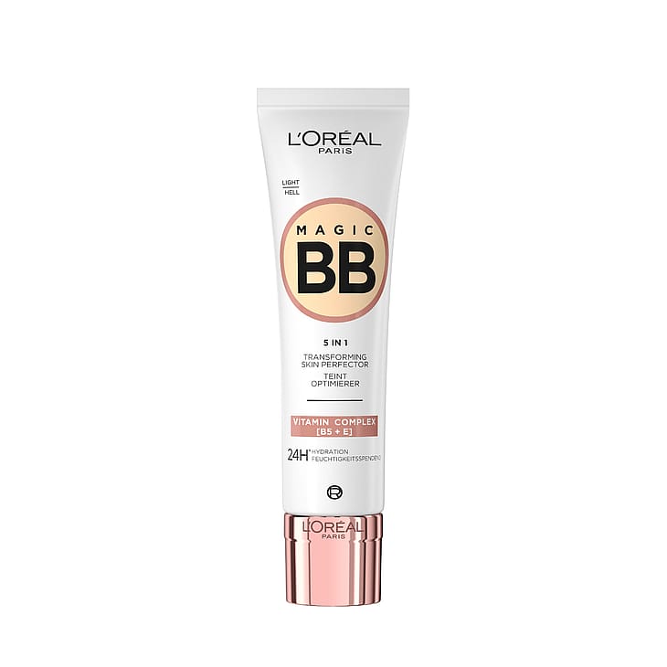 Saat täydellisen nude-lookin L'Oréal Paris Magic BB Cream -voiteella. Hoitava ja kevyesti peittävä BB-voide. Koostumus on rikastettu E-vitamiinilla + Pro-Vitamiini B5:llä, jotka antavat ihollesi hehkua ja kosteutta jopa 24 tuntia*. Kevyt koostumus tuntuu miellyttävältä levitettäessä ja sisältää kapseloituja pigmenttejä, jotka muuttavat voiteen väriä ja saavat sen mukautumaan juuri sinun ihonsävyysi. Luo täydellinen look kevyesti peittävällä BB-voiteella, joka tasoittaa ihon sävyä ja jättää ihon kosteutetuksi ja hehkuvaksi!