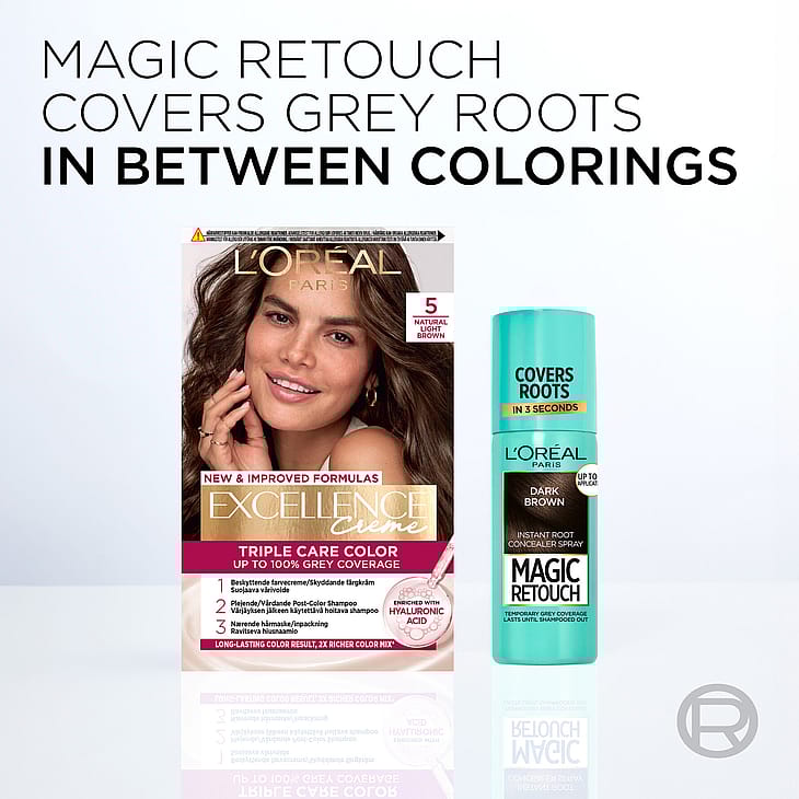 L'Oréal Paris Magic Retouch Roots- tyvisävytteen avulla raikastat hiuksesi ja värjäät tyvikasvun nopeasti ja helposti. Tehokas sävytesuihke tyvikasvulle silloin, kun et ehdi kampaajalle, mutta haluat peittää tyvikasvusi nopeasti ja luonnollisesti. L'Oréal Paris Magic Retouch Roots sulautuu täydellisesti hiusten sävyyn ja tarjoaa luonnollisen ja kestävän lopputuloksen. Tahraamaton koostumus takaa virheettömän värin ja kestää seuraavaan shampoopesuun saakka.