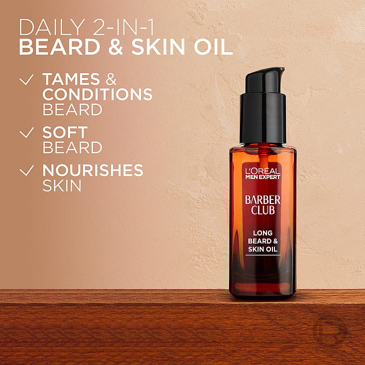 L'Oréal Paris Men Expert Barber Club öljy parralle ja iholle tuoksuu miehekkäältä ja rauhoittaa ja hoitaa parran alla olevaa ihoa. Partaöljyn koostumus sisältää eteeristä setripuunölyä. Se vahvistaa, hoitaa ja tekee parrasta helpommin hallittavan. Partaöljy toimii ihanteellisena parranhoitona, ja sitä voi käyttää L'Oréal Paris Men Expert Barber Club -puhdistusgeelin parralle, kasvoille ja hiuksille täydentäjänä.