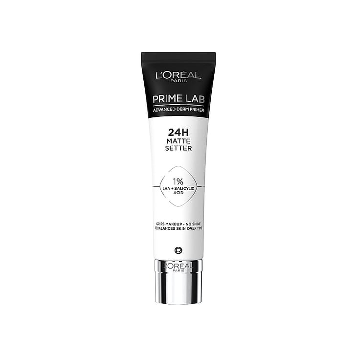 L'Oréal Paris Prime Lab Advanced Derm Primer 24H Matte Setter -pohjustusvoide antaa iholle mattapinnan ja hillitsee ihon kiiltoa 24 tunnin ajan*. Pohjustaa ja tekee ihosta tasaisemman häivyttämällä epäpuhtauksien ja ihohuokosten näkyvyyttä sekä ihon kiiltoa. Koostumus antaa matan lopputuloksen. Koostumus sisältää 1 % LHA + salisyylihappoa ja se auttaa hillitsemään ihon kiiltoa.