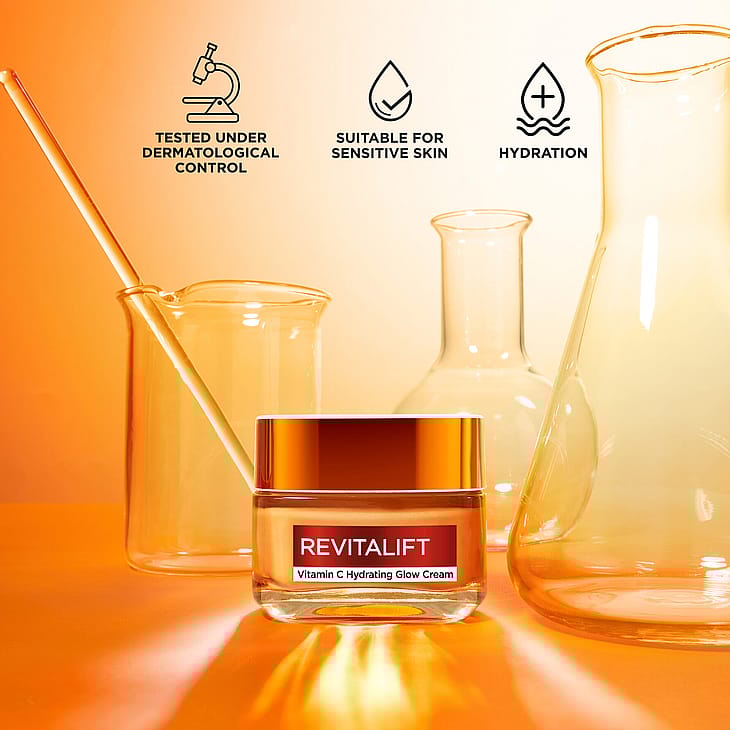 L'Oréal Paris Revitalift Vitamin C Brightening Day Cream on kevyt kasvovoide, joka antaa tasaisen ihon sävyn, kosteuttaa 24 tuntia, häivyttää ihohuokosia, silottaa ihoa ja vähentää ryppyjä. C-vitamiinia, salisyylihappoa, E-vitamiinia, peptidiä ja glyseriiniä sisältävä koostumus antaa ihollesi kaunista heleyttä.
