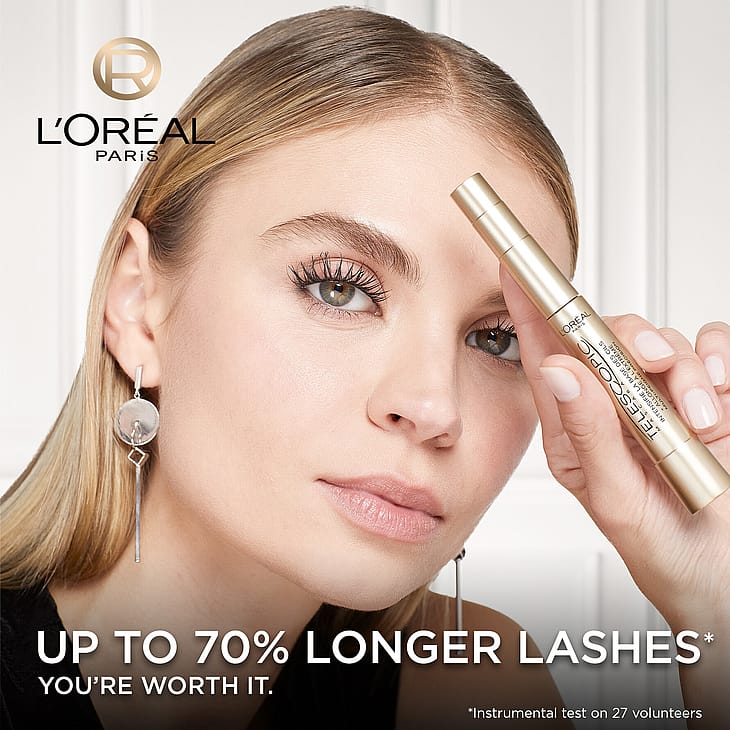 L'Oréal Paris Telescopic Mascara Black antaa sinulle pitkät ripset ja magneettisen, vastustamattoman katseen. Levitä ripsiväri joustavalla kumiharjalla, joka erottelee ripset helposti ja peittää jokaisen ripsen intensiivisen mustalla värillä ilman paakkuja. Ripsiväri, joka kestää koko päivän ja pidentää ripsiäsi jopa 60 % (instrumentaalinen testi). Koe Telescopic Mascaran vaikutus jo tänään!