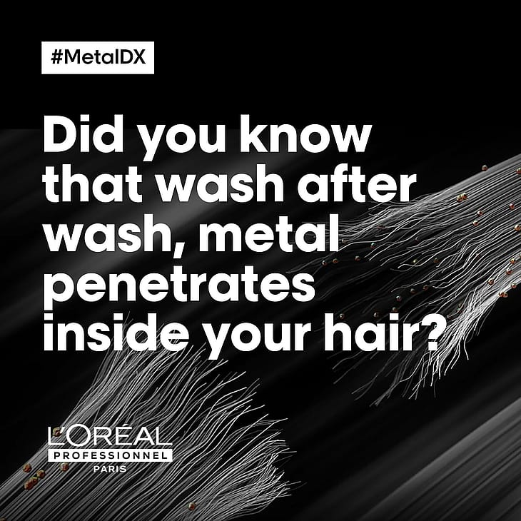 [KYSY METAL DX -MENETELMÄSTÄ] Kysy seuraavalla kampaamokäynnilläsi Glicoaminea sisältävästä Metal DX -menetelmästä katkeilevien hiusten ja värimuutosten ehkäisemiseksi: -99 % katkeilevia hiuksia*** ja todenmukainen ja pitkäkestoinen hiusväri. Metal DX on kehitetty yhteistyössä väri-, balayage- ja vaalennuksen ammattikampaajien kanssa. @sebastiancolorist, @washingtonnunnes, @lucasdioslo & @charlotte_catherin