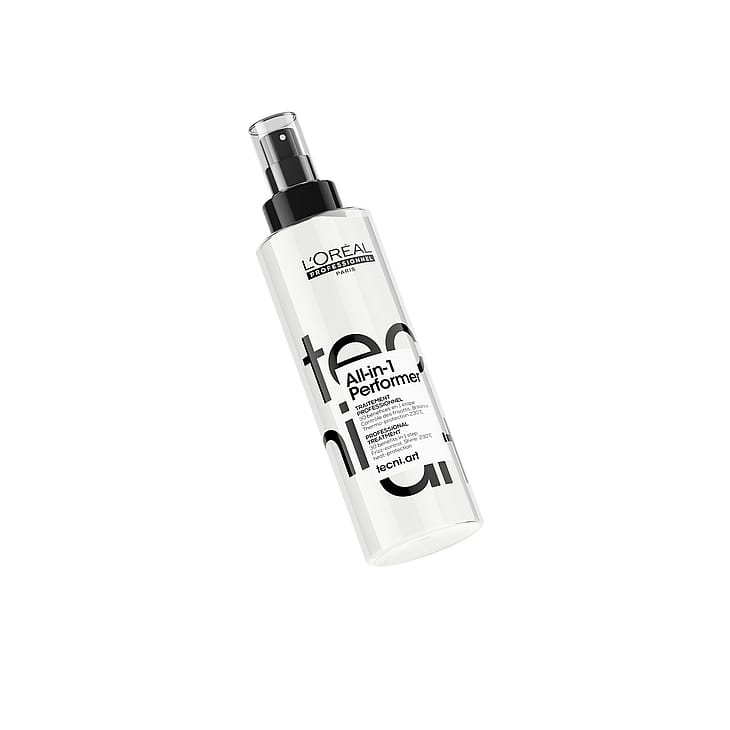 L’Oréal Professionellin Tecni.art All-in-1 Performer Styling Treatment on ammattitasoinen hiuksiin jätettävä hoitotuote, joka tarjoaa 30 hyötyä yhdellä suihkauksella. Tähän sisältyy lämpösuoja, ravitsemus, selvitys, pito ja kiilto.