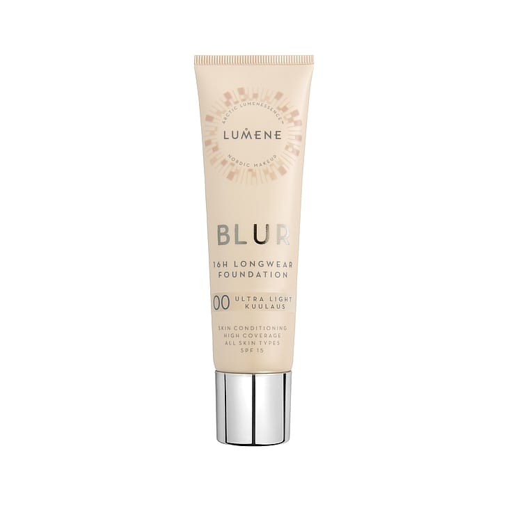 Blur Pitkäkestoisen meikkivoiteen peittävä koostumus häivyttää ihon pieniä virheitä ja ihohuokosia antaen virheettömän, puolimatan lopputuloksen. Täyteläinen koostumus sisältää kosteuttavaa pohjoista lähdevettä ja hoitavaa pohjoista kanervaa, joka auttaa tekemään koostumuksesta miellyttävän tuntuisen iholla. Koostumuksen innovatiivinen blur-teknologia häivyttää optisesti juonteita ja ihon epätasaisuuksia. SK15 suojaa ihoa auringon haitallista UVA- ja UVB-säteilyä vastaan. Hajusteeton koostumus sopii kaikille ihotyypeille. 100% vegaaninen. Valmistettu Suomessa. Tuubin valmistuksessa on käytetty kierrätysmuovia.