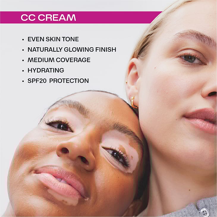CC Color Correcting Meikkivoiteen kevyen tuntuinen, puolipeittävä koostumus vähentää punaisuutta ja tasoittaa ihon sävyä luoden täydellisen tasaisen, heleän lopputuloksen.