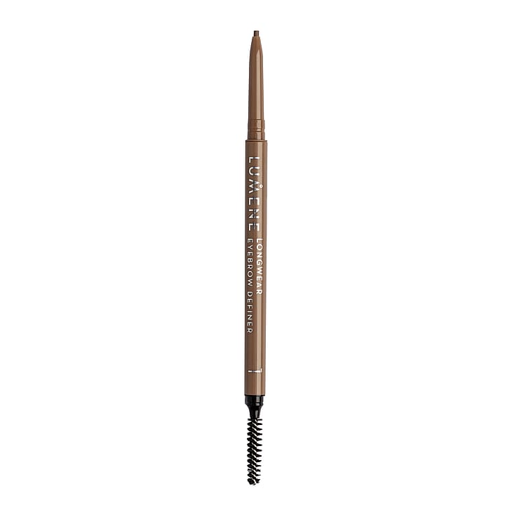 Longwear Eyebrow Definer Kulmakynä on hajusteeton automaattinen kulmakynä, jonka erittäin ohut kärki auttaa muotoilemaan kulmat kauniisti ja tarkasti. Tahraamaton, pitkäkestoinen koostumus antaa luonnollisen mattaisen lopputuloksen ja auttaa pitämään kulmat viimeistellyn näköisinä koko päivän. Pehmeä, erittäin ohut kärki muotoilee kulmat luonnollisen tarkasti, eikä kynää tarvitse teroittaa. Pieni harjapää on täydellinen kulmien muotoilun viimeistelyyn ja värin häivyttämiseen. Vegaaninen.