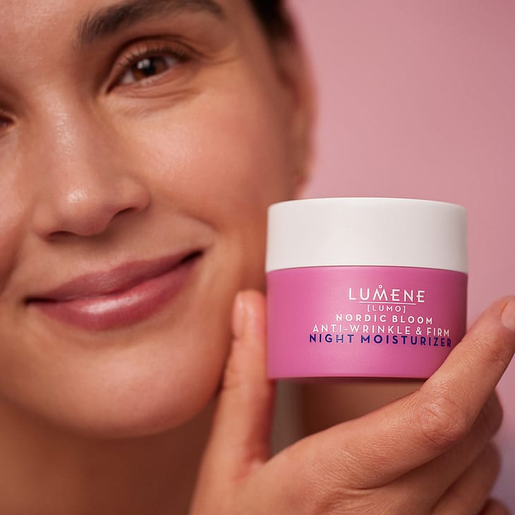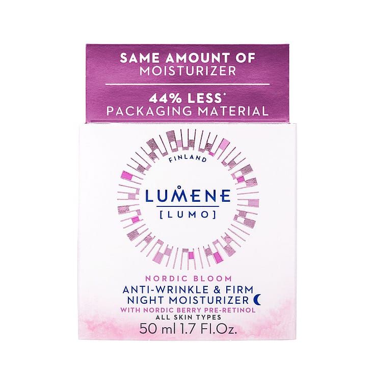 LUMENE Nordic Bloom [Lumo] Night Moisturizer hoitava yövoide on kliinisesti testattu kosteuttava, ryppyjä häivyttävä ja ihoa kiinteyttävä vaikutus auttaa ihoa palautumaan yön aikana, saaden sen näyttämään levänneeltä ja luonnollisen nuorekkaalta. Sisältää innovatiivista pohjoisten marjojen pre-retinoli-yhdistettä sekä runsaasti kversetiiniä sisältävää patentoitua pohjoista puolukkauutetta.Vegaaninen koostumus sisältää sivuvirroista saatavia ja luonnosta käsin poimittuja raaka-aineita. Valmistettu Suomessa.