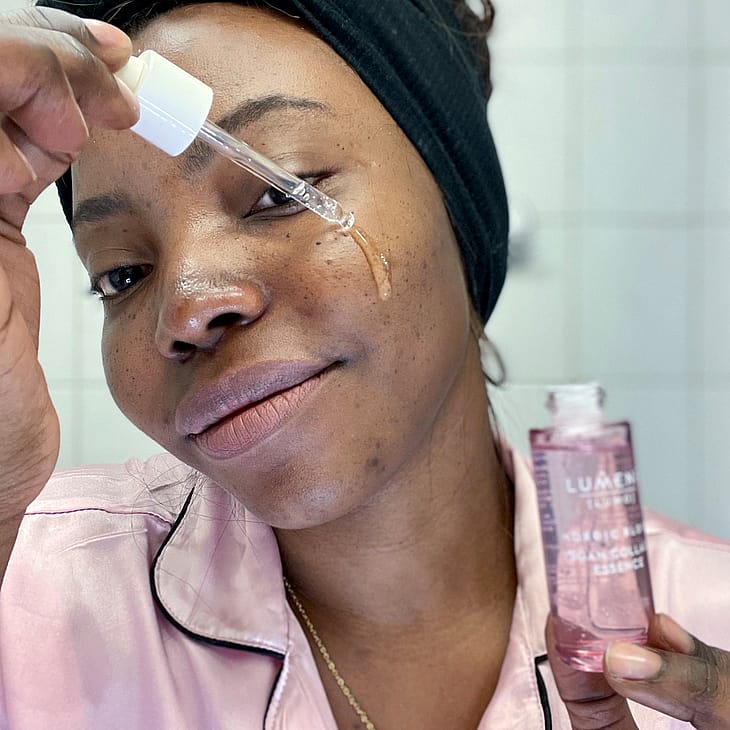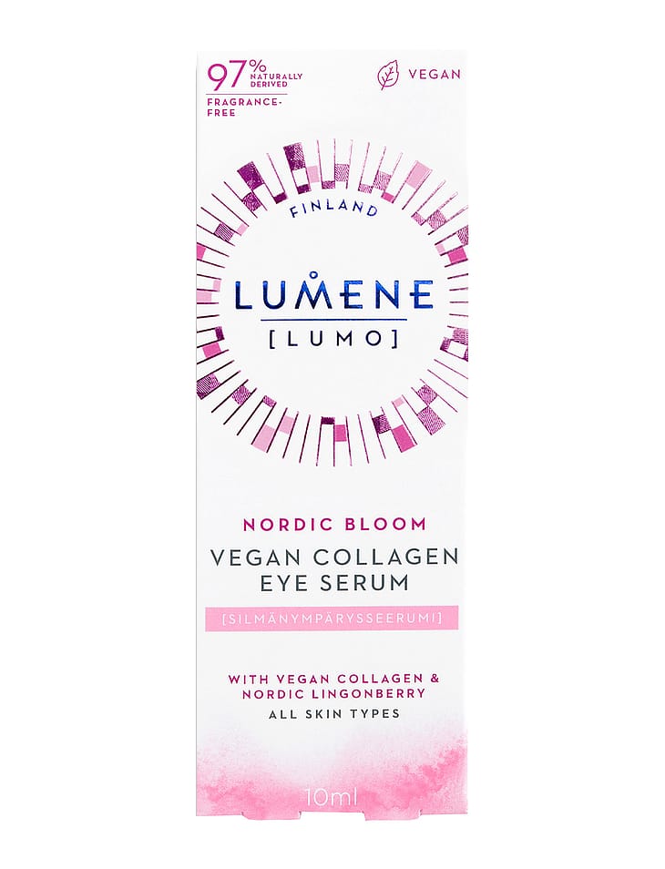 Palauta ihosi nuorekas kimmoisuus silottavalla tehoseerumilla. Lumene LUMO Kimmoisuutta lisäävä kollageeniseerumi häivyttää ihon kollageenin vähenemisen merkkejä ja häivyttää näkyvästi ryppyjä ja auttaa tekemään ihosta elastisemman näköisen. Iho näyttää kiinteämmältä ja nuorekkaammalta. Vegaanista kollageenia, pohjoista puolukkavettä ja kolmen tyyppistä hyaluronihappoa sisältävä innovatiivinen geelimäinen koostumus kosteuttaa tehokkaasti, tehden ihosta sileämmän ja täyteläisemmän näköisen. Hajusteeton ja vegaaninen koostumus sisältää sivuvirroista saatavaa ja käsin poimituista marjoista jalostettua puolukkavettä. Pakkauksessa on käytetty kierrätettäviä ja kierrätettyjä materiaaleja. Valmistettu Suomessa.