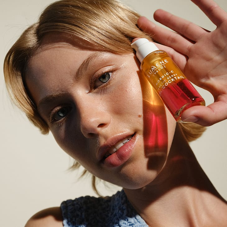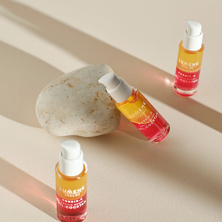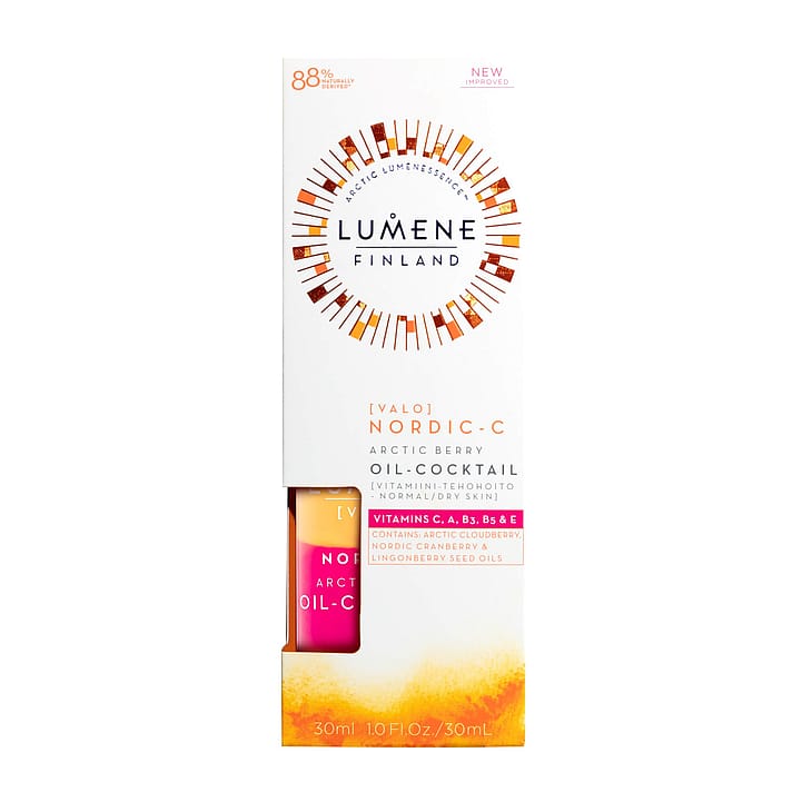 Tämä heleyttävä ja virkistävä kaksiosainen monivitamiinitehohoito sisältää kallisarvoisia pohjoisen marjoja: lakkaa, karpaloa ja puolukkaa. Ne sisältävät runsaasti C-, B3-, B5- ja E-vitamiineja, A-vitamiinin esiastetta, antioksidantteja ja tärkeitä omega-rasvahappoja, jotka auttavat elvyttämään ja tasoittamaan kuivintakin ihoa ja auttavat palauttamaan sen nuorekkaan hehkun. 100 % vegaaninen. Valmistettu Suomessa.