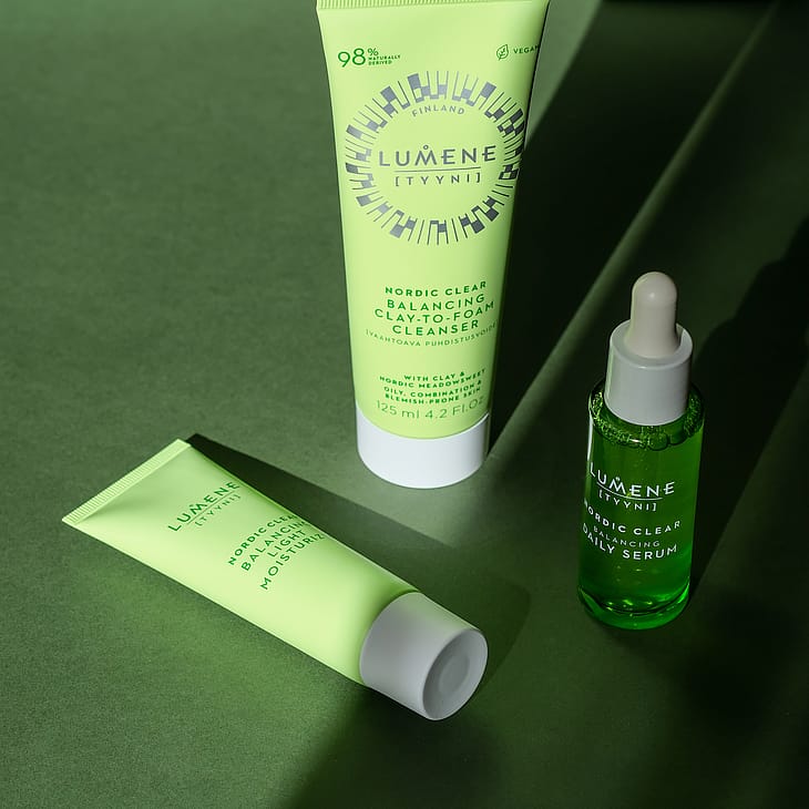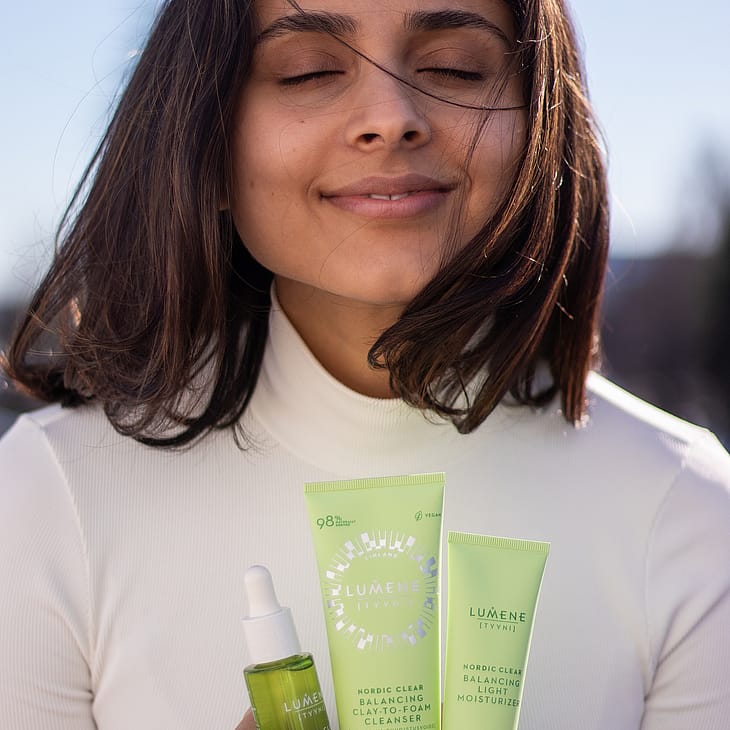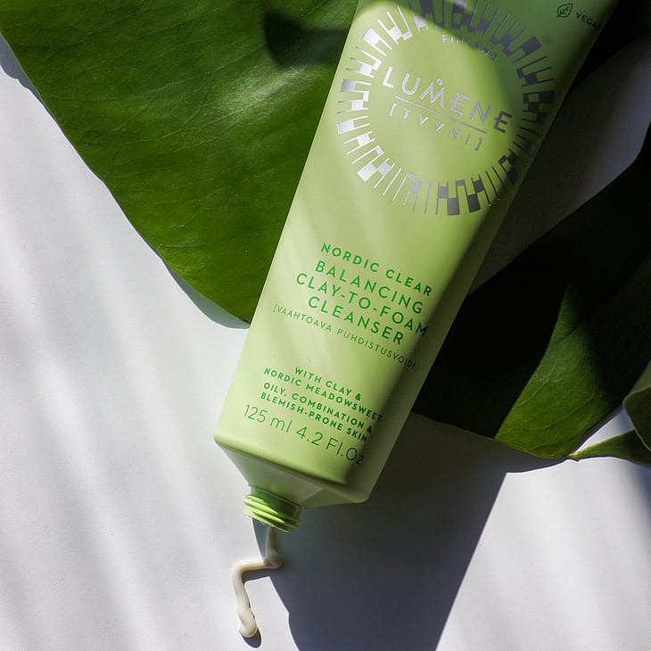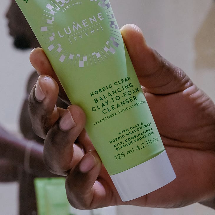 Lumene TYYNI Tasapainottava vaahtoava puhdistusvoide rasvoittuvalle, sekaiholle ja epäpuhtauksiin taipuvaiselle iholle pesee tehokkaasti kasvomeikin, epäpuhtaudet ja ylimääräisen öljyisyyden. Puhdistaa ihohuokosia ja auttaa ehkäisemään uusien epäpuhtauksien syntyä ihoa kuivattamatta. Tasapainottavaa pohjoista mesiangervoa ja rauhoittavaa pohjoista ruusujuurta sisältävä syväpuhdistava vegaaninen koostumus muuttuu voidemaisesta savesta kevyeksi vaahdoksi, joka puhdistaa ihon kuivattamatta, jättäen sen raikkaaksi, pehmeäksi ja sen pH:n tasapainoiseksi. Tuubin valmistuksessa on käytetty kierrätysmuovia. Valmistettu Suomessa.