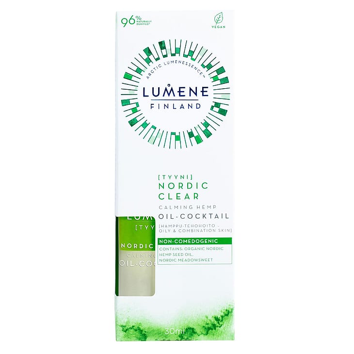 Kevyessä, kaksiosaisessa tehohoidossa yhdistyvät runsaasti tärkeitä rasvahappoja sisältävän pohjoisen luomu hampunsiemenöljyn rauhoittavuus ja pohjoisen mesiangervon tasapainottava vaikutus. Tehohoito ei tuki ihohuokosia ja se sopii erityisesti epäpuhtauksista kärsivälle, rasvaiselle ja sekaiholle. Se rauhoittaa rasittuneen ihon epämukavaa tunnetta, häivyttää punoitusta ja parantaa ihon tekstuuria, jättäen iholle tasapainoisen ja kosteutetun tunteen. Ihosi voi viimein rentoutua. Sopii rasvaiselle ja sekaiholle. 100 % vegaaninen. Valmistettu Suomessa.