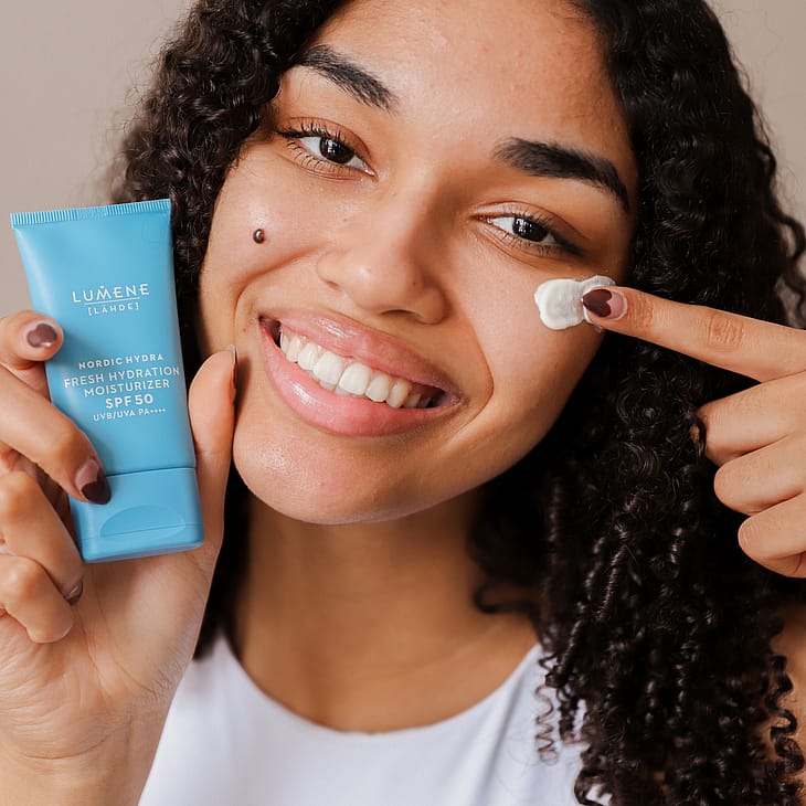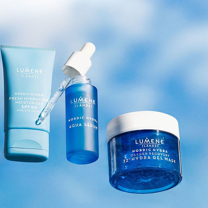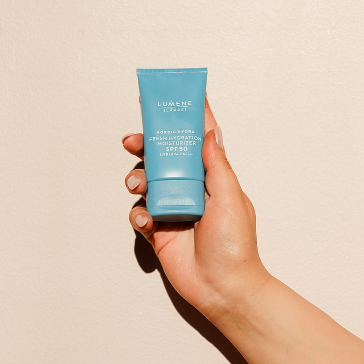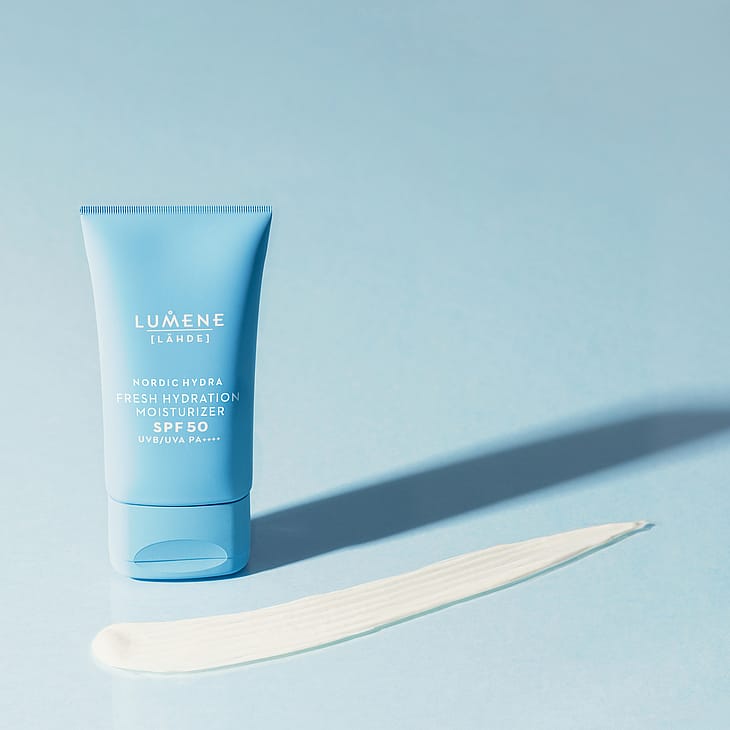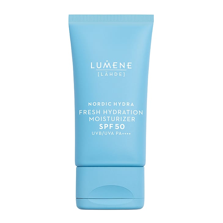 LUMENE Nordic Hydra [Lähde] Tehokosteuttava päivävoide SPF50 on välittömästi kosteuttava, kevyt kosteusvoide kaikille ihotyypeille. Tämä kevyen tuntuinen päivävoide, joka sisältää SPF50 on suunniteltu suojaamaan ihoa auringon UVB/UVA säteiltä samalla kosteuttaen ihoa intensiivisesti ja pitkäkestoisesti, sekä saaden ihon näyttämään kuulaalta ja kosteutetulta. Tehostettu pohjoisella koivunmahlalla ja kahdella hyaluronihappokoolla, tämä päivävoide syväkosteuttaa ja sitoo kosteutta ihoon saaden ihon näyttämään täyteläiseltä ja kimmoisalta. Kevyt voidekoostumus levittyy iholle vaivattomasti ja imeytyy välittömästi ilman rasvaista tai tahmeaa tunnetta. Ilmavan kevyt lopputulos ilman valkoista kerrosta tekee tuotteesta täydellisen jokapäiväiseen käyttöön ja sopii kaikille ihotyypeille. Pakkauksessa on käytetty kierrätettyjä ja kierrätettäviä materiaaleja. Kehitetty ja valmistettu Espoossa.