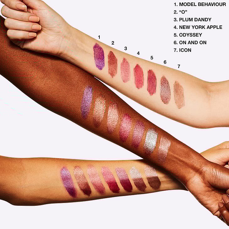 Huulipuna sinivihreällä sävyllä ja puolikuultavalla viimeistelyllä. Käytä kaksiväristä näyttävää huulipunaa sellaisenaan tai yhdessä huulikynän kanssa huurteisena viimeistelynä.