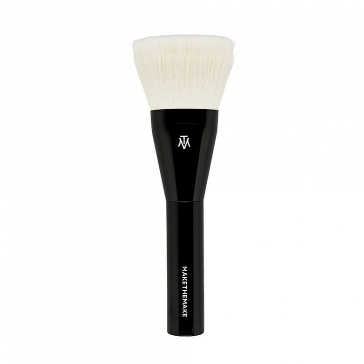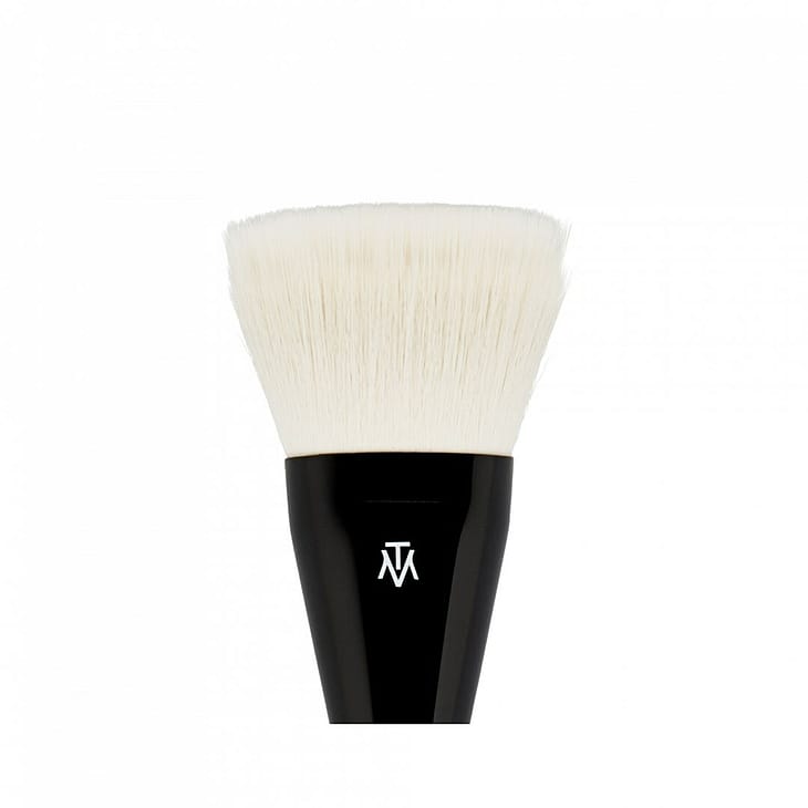 Poimi tuote siveltimen kärjen ohuemmilla harjaksilla ja levitä sitten tasaisesti pyörivin liikkein painaen sivellintä hieman enemmän ihoa vasten. Näin tiiviimmät harjakset levittävät tuotteen tasaisesti iholle.