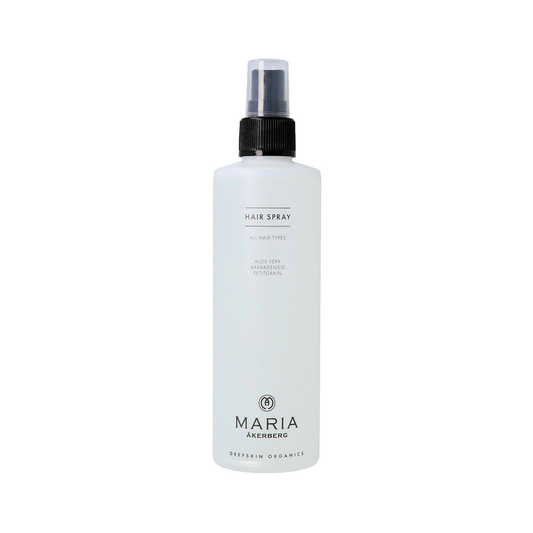 Luonnonmukainen hiussuihke, joka toimii hiuskiinteen tavoin. Sisältää suojaavaa aloe veraa ja hoitavaa jojobaöljyä, jotka antavat pitoa. Pomeranssipuun eteerinen öljy tasapainottaa hiuspohjaa. Ei sisällä ponnekaasua, säilöntäaineita, akryyliamidia, synteettistä parfyymiä, silikonia tai mineraaliöljyä.