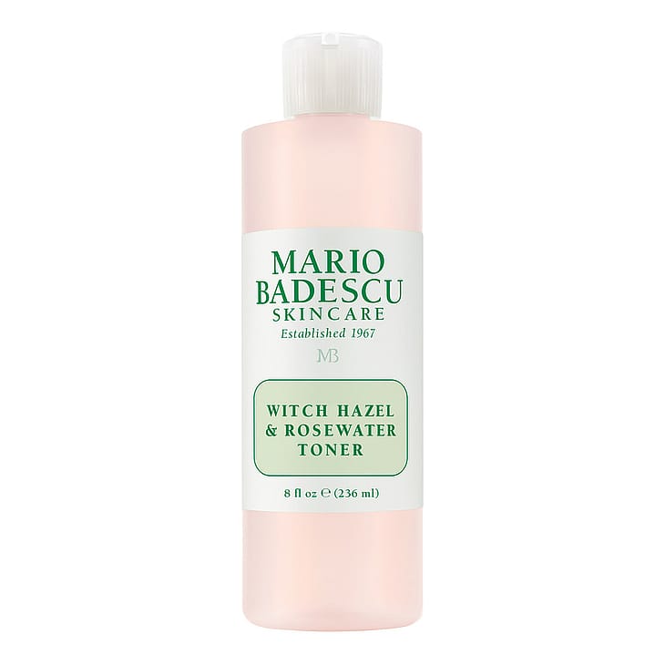 Mario Badescu Witch Hazel & Rosewater Toner palauttaa ihon kirkkauden ja hehkun jokaisen pesun jälkeen. Ruusuvettä ja taikapähkinää sisältävä kasvovesi auttaa puhdistamaan epäpuhtauksia ärsyttämättä tai kuivattamatta ihoa. Aloe vera, ruusuvesi ja ruusuöljy yhdessä rauhoittavat, kosteuttavat ja tasapainottavat kasvojen ihoa. Tuote on vegaaninen.