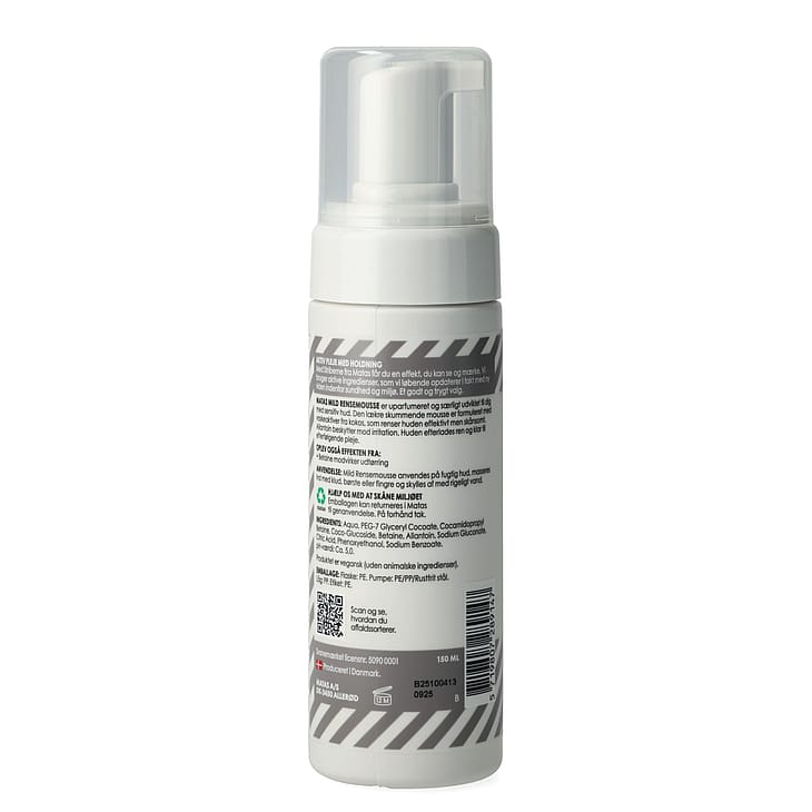 Matas Hellävarainen Puhdistusmousse on hajusteeton ja erityisesti herkälle iholle kehitetty. Tehokas kasvojen puhdistusrutiini aamulla ja illalla on tärkeä, jotta pääset eroon päivän aikana kertyneistä meikeistä, liasta ja muista epäpuhtauksista. Matas Hellävarainen Puhdistusmousse on hellävarainen ja ihastuttavan vaahtoava mousse, joka on valmistettu kookosperäisistä puhdistavista aineista, jotka puhdistavat ihon tehokkaasti. Iho jää puhtaaksi, rauhoittuneeksi ja valmiiksi seuraavaan hoitovaiheeseen.