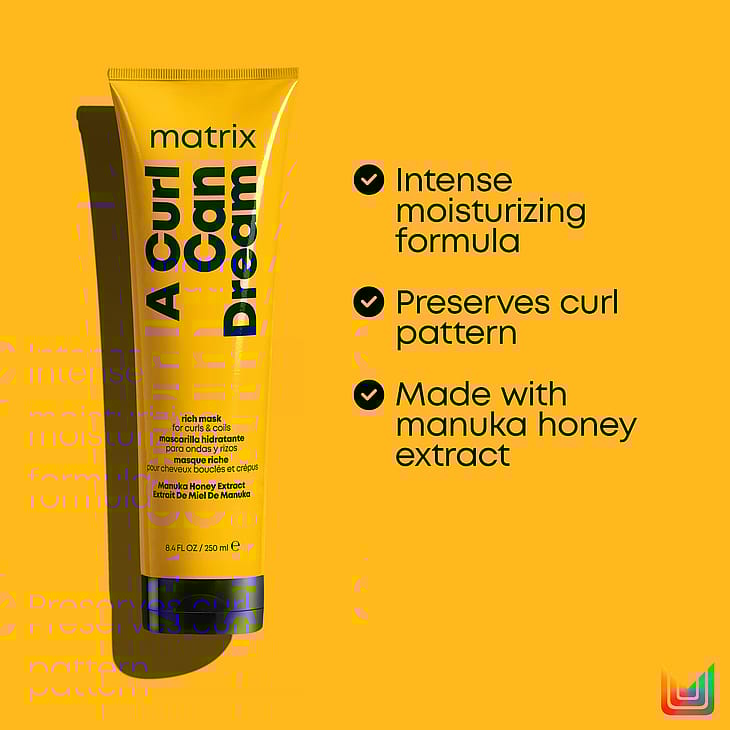 Matrix A Curl Can Dream Mask on täyteläinen, huuhdeltava hiusnaamio kiharien hiusten tuotesarjastamme, joka kosteuttaa tehokkaasti ja sisältää Manuka-hunajauutetta.Matrix A Curl Can Dream Mask tarjoaa tehokasta kosteutusta ja sisältää Manuka-hunajan uutetta. Tämä pois huuhdeltava, kosteuttava hiusnaamio on osa Manuka-hunaja -tuotesarjaa, joka auttaa pitämään kiharasi kosteutettuina ja muotoiltuina. Hiusnaamio sopii täydellisesti päivittäiseen käyttöön tai niin usein kuin kiharat tai erittäin kiharat hiuksesi sitä tarvitsevat. Tärkeimmät edut:
