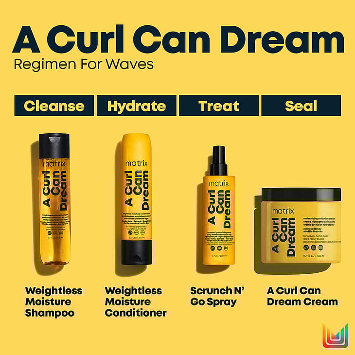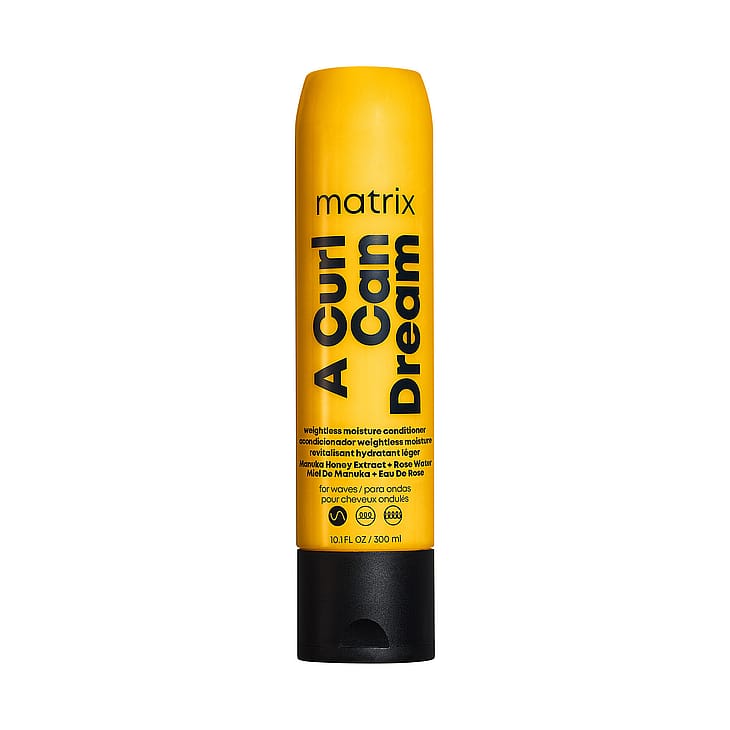 Sano hyvästit latteille hiuksille: Matrix a Curl Can Dream Weightless Moisture -hoitoaine on voidemainen ja kevyt hoitoaine kehitetty laineikkaille hiuksille. Se sisältää Manuka-hunajaa ja ruusuvettä, ja tarjoaa jopa 48 tuntia laineiden muotoja ylläpitävän vaikutuksen ja suojaa pörröisyyttä vastaan*. Saavuta kiiltävä ja liikkuva lopputulos. *Itsearviointi: koko tuotesarja sisältäen Weightless Moisture -shampoon, Weightless Moisture -hoitoaineen ja Scrunch N’ Go Defining -suihkeen, 51 henkilöä