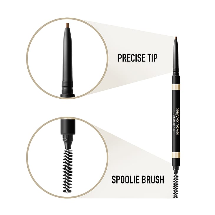 Muotoile, täytä ja korosta kulmakarvojasi Max Factorin Brow Shaperilla. Brow Shaper auttaa luomaan trendikkään ja korostetun kulmakarvalookin, joka kehystää kasvojasi. Kaksipuolinen kulmakarvakynä on kierrettävä, jonka pehmeä, rakentava koostumus antaa tasaisen värin. Kynän kapea kärki helpottaa kulmakarvojen tarkkaa muotoilua. Harja auttaa muotoilemaan ja luomaan kulmakarvoille luonnollisen lopputuloksen. Vinkki Max Factorin makeupartistilta: harjaa kulmakarvoja ylöspäin ja sen jälkeen ulospäin ja saat täyteläisemmän, selkeämmän ja luonnollisemman lopputuloksen.• Kaksipuolinen kulmakarvakynä• Kynä kapealla kärjellä lisää tarkkuutta• Harja lisää kulmakarvojen täyteläisyyttä, selkeyttä ja luonnollista lopputulosta