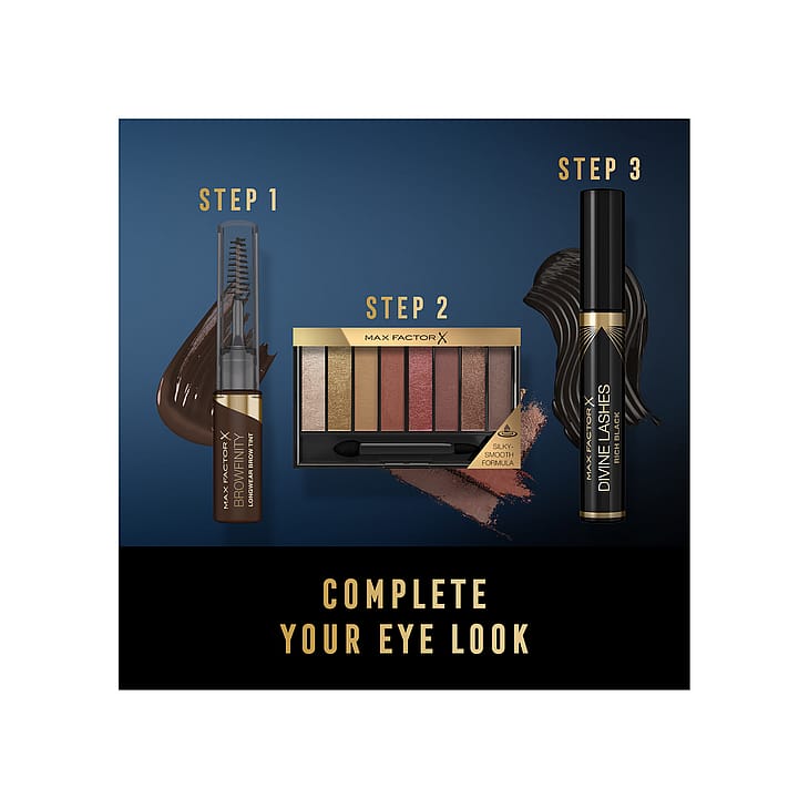 Luo koko päivän kestävät luonnollisen täyteläiset, korostetut ja värjätyt kulmakarvat Max Factor Browfinity Longwear Brow Tintillä. Brow Tint puolipysyvällä värjätyllä koostumuksella antaa kulmakarvoille luonnollisen värin, joka kestää monta päivää. Kaksoisapplikaattori korostaa kulmakarvoja samalla, kun sisäänrakennettu, erittäin pehmeä harja takaa pehmeän ja täyteläisen ilmeen. Browfinity Brow Tint on saatavissa kolmessa eri sävyssä; Soft Brown, Medium ja Dark Brown, jotka kaikki on valmistettu luonnollisesti värjätyllä pigmentillä, jotta kulmakarvasi näyttäisivät luonnollisilta.-- Vedenpitävä, hikoilulta ja tahroilta suojaava.- Nopeasti kuivuva koostumus, joka tuntuu kevyeltä kulmakarvoissa.- Välittömästi kestävä tulos.
