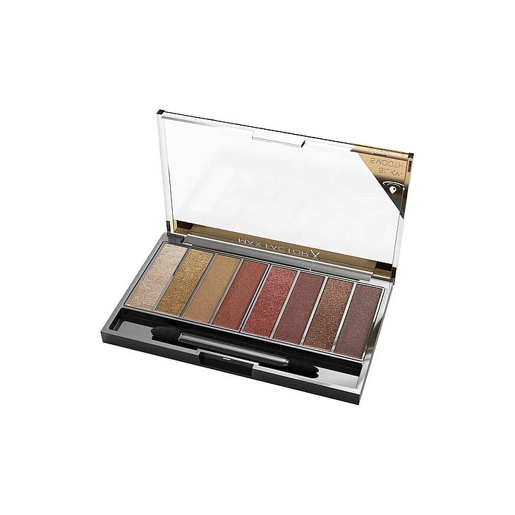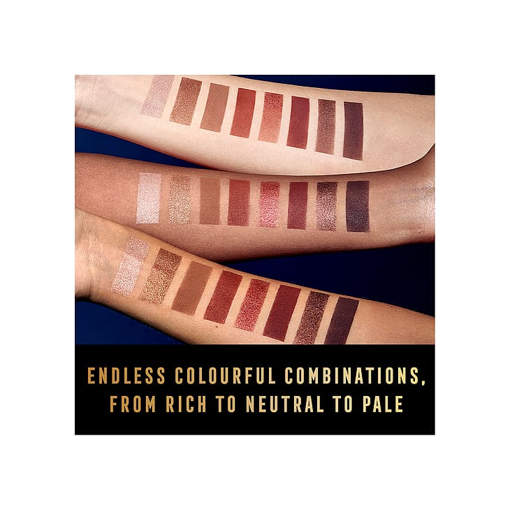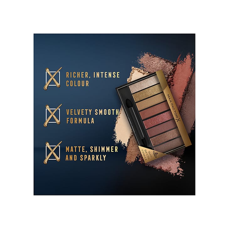 Luomiväripaletti, jossa on kahdeksan erilaista sävyä, sekä matta- että helmiäissävyjä. Tiivis ja runsaspigmenttisempi koostumus antaa täydellistä väriä. Paletissa on sävyjä vaaleasta tummaan.