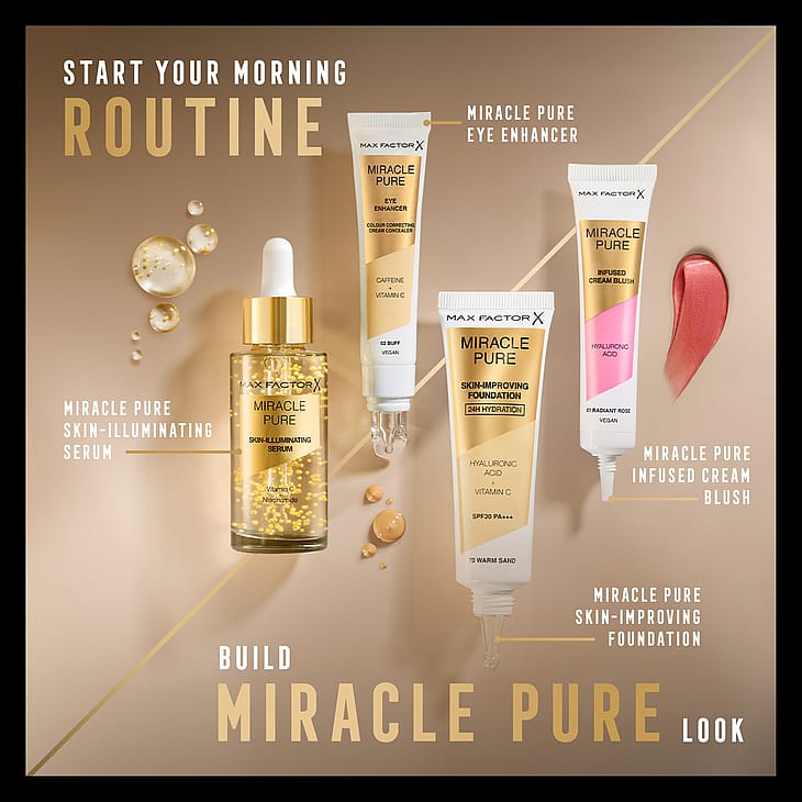 ”Saa 8 tunnin yöunet purkista Max Factorin Miracle Pure Eye Enhancer -peitevoiteen avulla. Väriä korjaava ja väsymyksen merkkejä häivyttävä peitevoide vaalentaa välittömästi tummia silmänalusia.