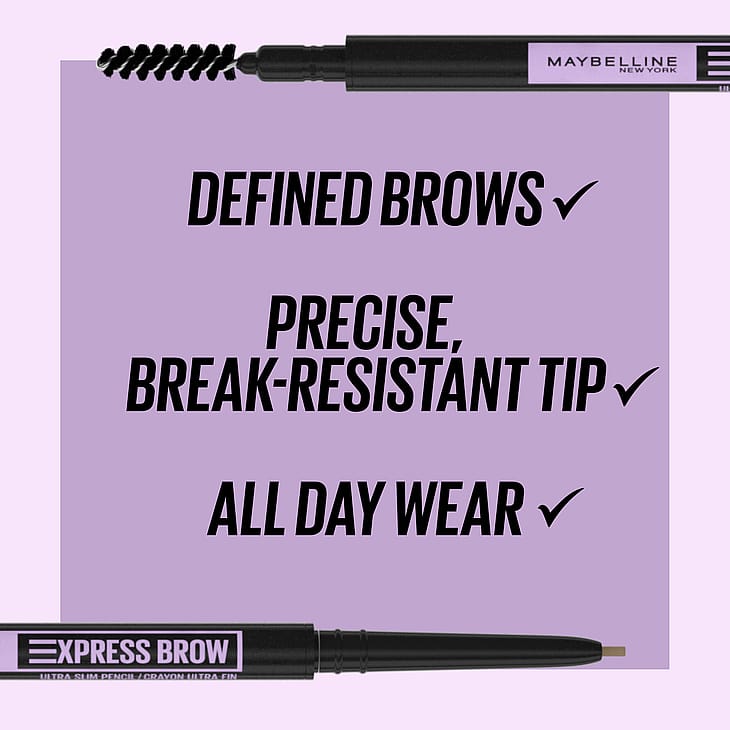 Maybelline Express Brow Ultra Slim -kulmakynällä luot tarkasti muotoillut ja luonnolliset näköiset kulmat. Tasainen ja tarkka lopputulos. Ohuella 1,5m kärjellä voi piirtää hiuksenhienoja vetoja. Lopputuloksena luonnollisen näköiset ja tarkasti muotoillut kulmat, jotka kestävät koko päivän.