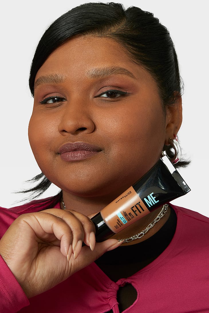 Levitä tasaisesti kasvoille sormin, meikkisiveltimellä tai -sienellä. Jos toivot enemmän peittävyyttä, kerrosta. Huolittele luonnollinen look levittämällä Fit Me concealer- peiteväriä halutuille alueille peittämään kauneusvirheitä. Muotoile ja korosta vaaleammalla peitevärillä silmänaluksia, nenänvartta tai otsaa. Viimeistele meikki Maybellines Fit Me Matte+Poreless Powder -puuterilla, joka kiinnittää meikin ja antaa iholle mattapinnan.