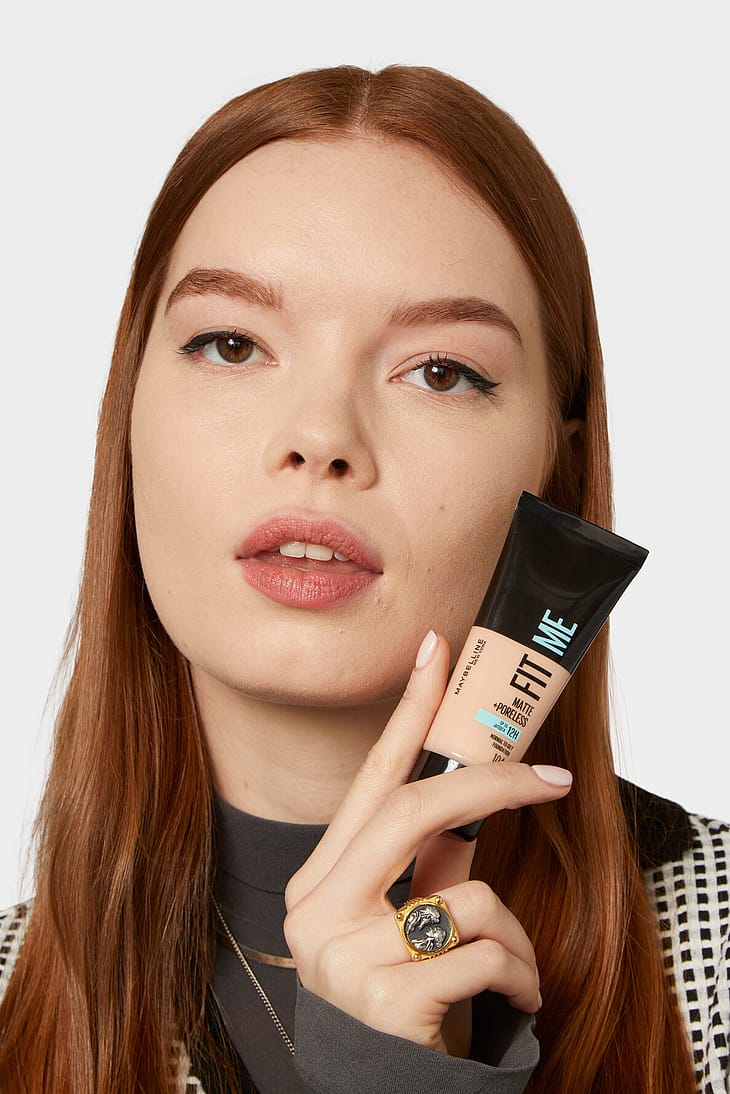 Levitä tasaisesti kasvoille sormin, meikkisiveltimellä tai -sienellä. Jos toivot enemmän peittävyyttä, kerrosta. Huolittele luonnollinen look levittämällä Fit Me concealer- peiteväriä halutuille alueille peittämään kauneusvirheitä. Muotoile ja korosta vaaleammalla peitevärillä silmänaluksia, nenänvartta tai otsaa. Viimeistele meikki Maybellines Fit Me Matte+Poreless Powder -puuterilla, joka kiinnittää meikin ja antaa iholle mattapinnan.