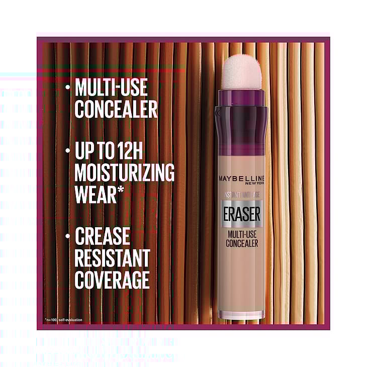 Kokeile kosteuttavaa ja luonnollisen näköistä peitevoidetta. Maybelline New York Instant Anti Age Eraser Concealer on peitevoide tummille silmänalusille ja ihon pienille virheille. Miellyttävä, nestemäinen ja vegaaninen* koostumus tarjoaa puolipeittävän lopputuloksen.