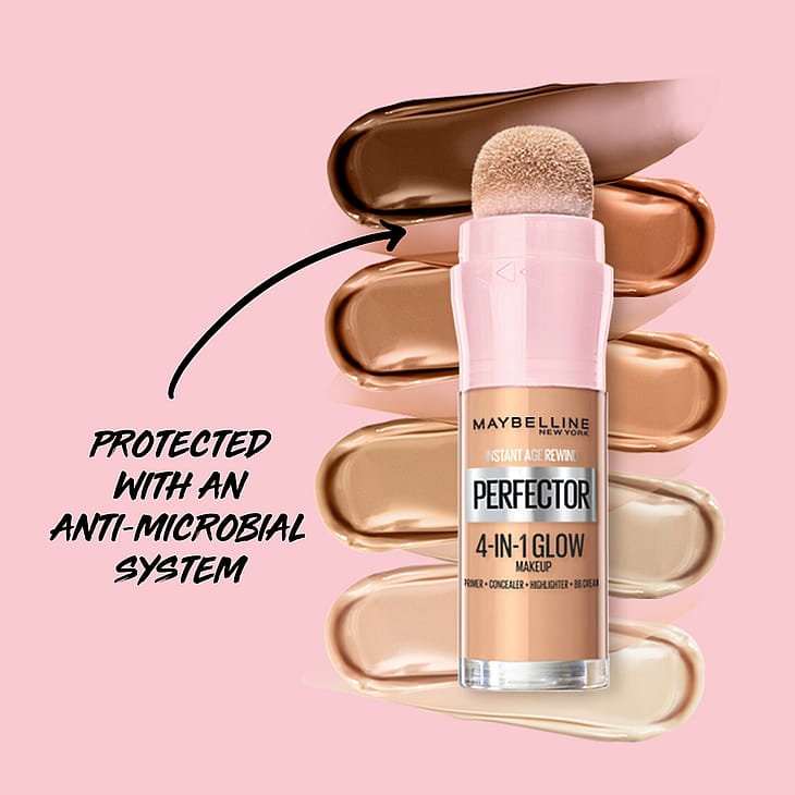 Instant Perfector 4-In-1 Glow Makeup nestemäinen meikkituote antaa iholle hehkua ja kasteisen lopputuloksen. All-in-1 tuotteen koostumus tasoittaa ihon sävyä ja sisältää heleyttä antavia pigmenttejä, jotka antavat iholle sametinpehmeän lopputuloksen.