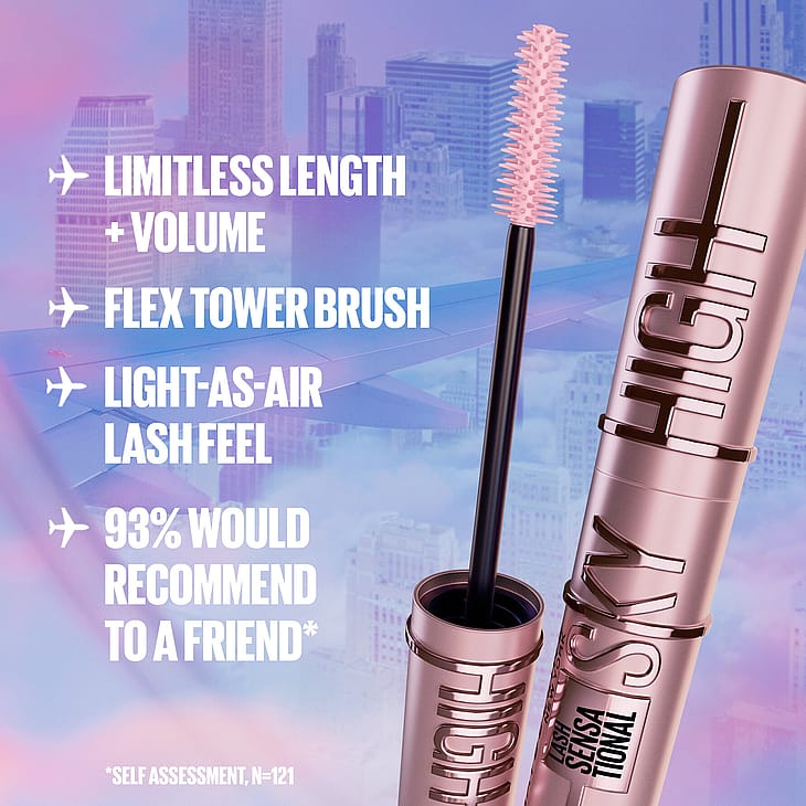 Koe tuuheammat ja loputtoman pitkät ripset suositun Maybelline New York Lash Sensational Sky High Mascara -ripsivärin ansiosta. Tämä pidentävä ripsiväri on testattu oftalmologisesti ja sopii herkille silmille. Joustavan harjan avulla erottelet jokaisen ripsen ja peität ne bambu-uutetta sisältävällä koostumuksella. Jättää ripset kevyen tuntuisiksi. Sky High Mascaran avulla saat pitkät ripset ja tuuhean lopputuloksen!