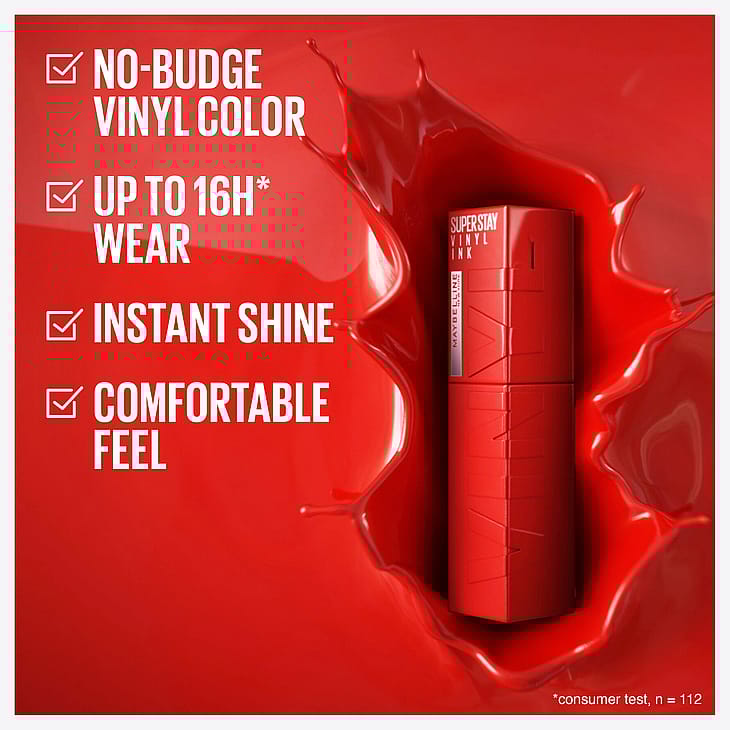 Nestemäinen erittäin runsaspigmenttinen huulipuna antaa intensiivisen värin, joka kestää 16H* miellyttävää, tahraamatonta kiiltoa. *Itsearviointi, 109 henkilöä