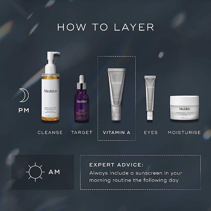 Crystal Retinal on A-vitamiiniin pohjautuvien ihonhoitotuotteiden uusi sukupolvi. Se sisältää retinaalia, joka on erittäin tehokas ihon luonnollisten mekanismien kanssa yhteistyössä toimiva A-vitamiinijohdannainen. Se vahvistaa kollageenin tuotantoa ja kiihdyttää solujen aineenvaihduntaa. Crystal Retinal muuttuu iholla retinoiinihapoksi, jolloin tulokset ovat vertailukelpoisia kliinisen A-vitamiinin kanssa: yli 11 kertaa nopeampi vaikutus kuin perinteisillä retinolin muodoilla. Yöllä käytettävä seerumivoide kiinteyttää ja täyteläistää ihoa sekä uudistaa sen pintakerrosta. Se vähentää pieniä juonteita ja ryppyjä näkyvästi. Tuloksena on virkeämpi ja nuorekkaampi iho sekä tasaisempi ihon sävy. Sisältää hyaluronihappoa eri molekyylipainoilla sekä E-vitamiinia, joka kosteuttaa ihon kaikkia kerroksia ja vahvistaa ihon suojakerrosta, mikä vuorostaan auttaa ihoa säilyttämään kosteuspitoisuutensa.