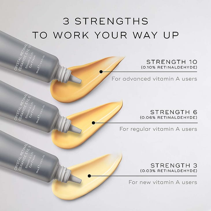 Crystal Retinal Ceramide Eye 10 on yövoide silmille, joka elvyttää all-in-one-ratkaisullaan silmänympärysihoa ja nuorentaa ilmettä huomattavasti. Medik8sin uraauurtavan A-vitamiiniseerumin inspiroimana Crystal Retinalin erikoissilmävoide sisältää optimaalisen määrän aktiivista ainesosaa retinaalia, joka vähentää kaikentyyppisiä ikääntymisen merkkejä. Tarjolla on 3 vahvuutta asteittain huomattavilla tuloksilla!